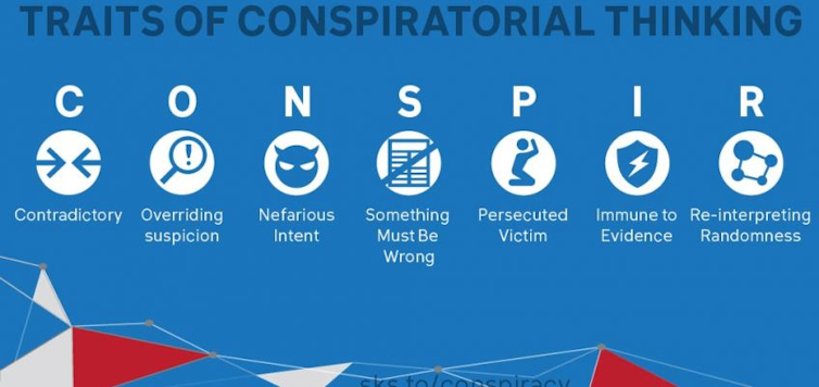 | Conspiracy theories increase the likelihood that people won’t follow expert advice. Shutterstock |