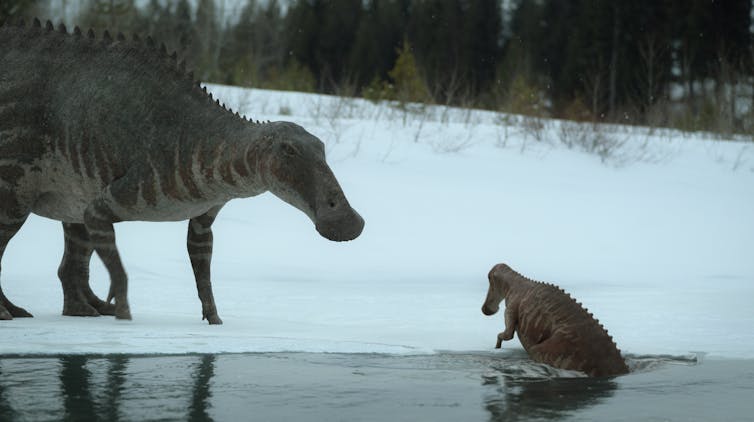 When the show’s producers first approached us to help understand the kinds of weather and environment that dinosaurs lived in before being wiped out around 66 million years ago, it prompted us to tackle a problem that has existed in palaeoclimate modelling for decades. That was, when scientists like us used computers to simulate, or “model”, the climate of prehistoric Earth, the models tended to make the poles much colder than evidence from fossils and rocks suggested they had actually been.